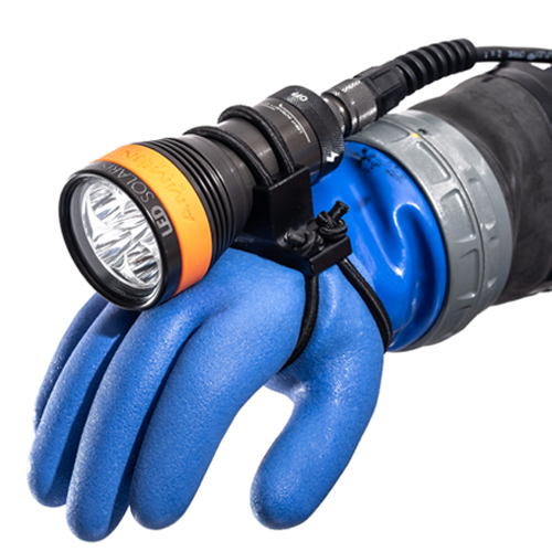 Uchwyt jest uniwersalny i można go łatwo przystosować do większości latarek nurkowych dostępnych na rynku, zarówno rekreacyjnych, jak i technicznych.