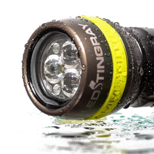 Stingray Mark II wykorzystuje trzy wysokowydajne diody CREE LED najnowszej generacji, które generują aż 1300 lumenów jasnego, chłodno-białego światła. Dzięki zastosowanej optyce i potrójnej soczewce latarka oferuje skupiony strumień 12° z dodatkową, szeroką poświatą 30°, co zapewnia perfekcyjną widoczność w ciemnych zakamarkach rafy, wraków czy jaskiń.