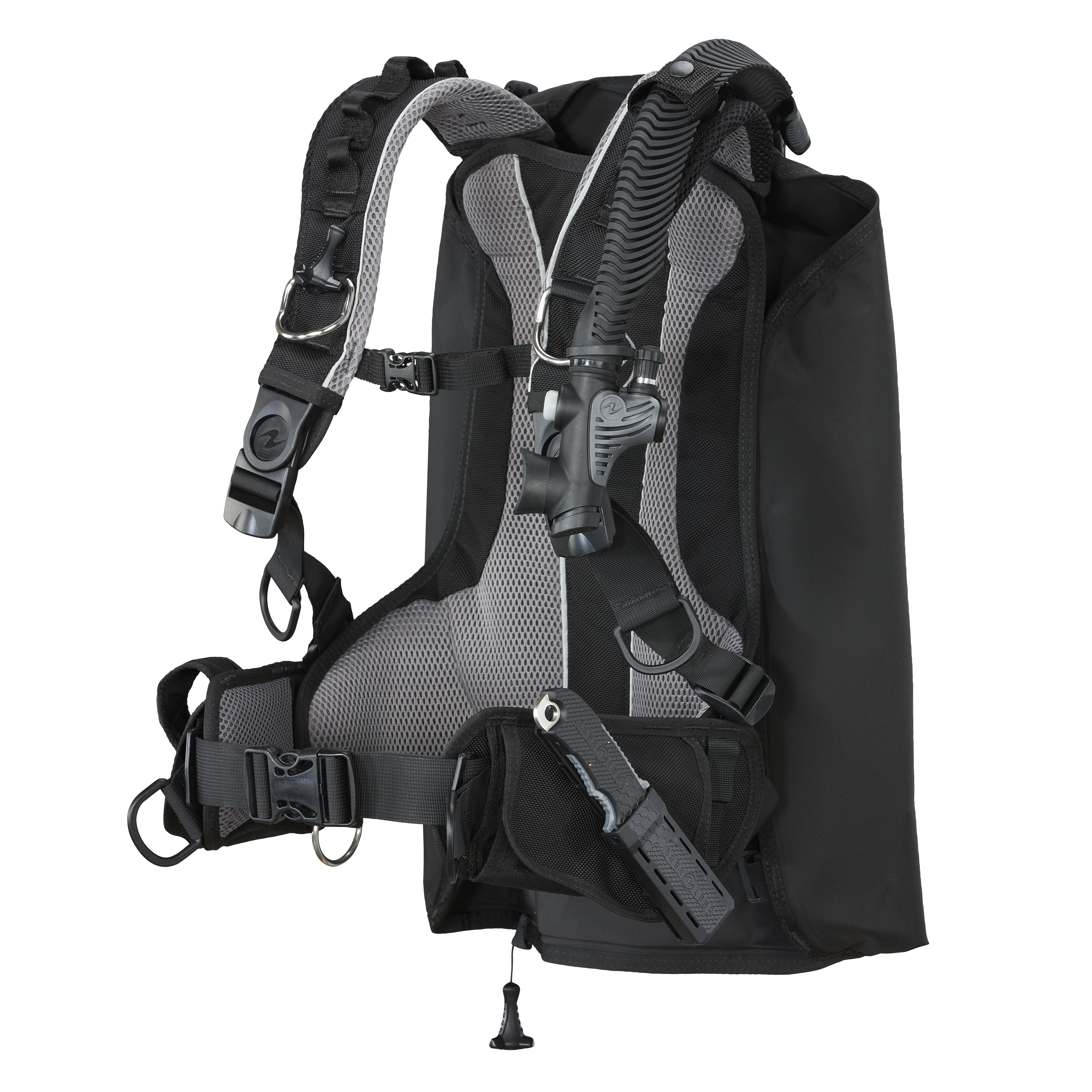 - System Pływalności – Zintegrowany system pływalności umożliwia łatwe dostosowanie wyporności, co zwiększa komfort nurkowania i ułatwia kontrolę w wodzie.