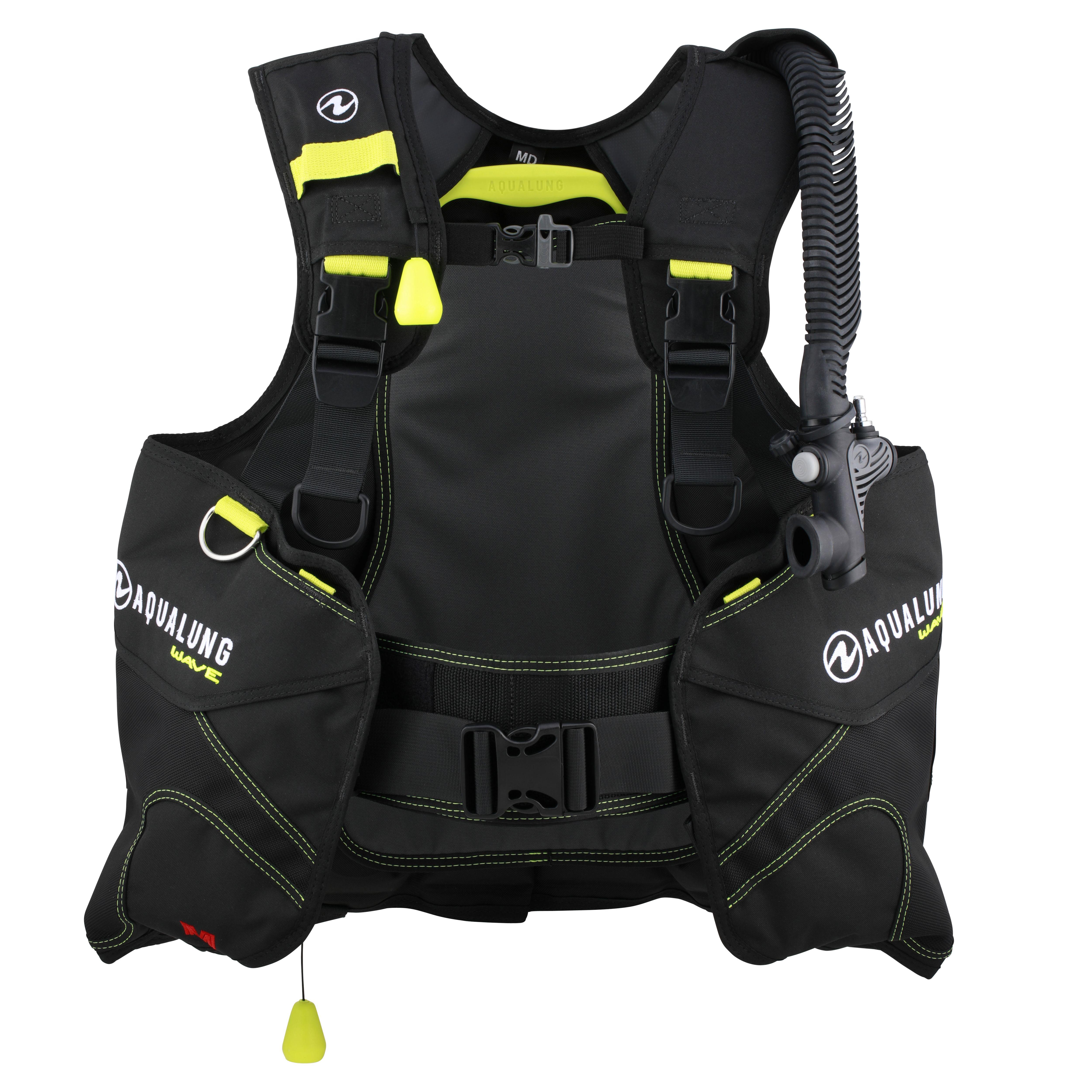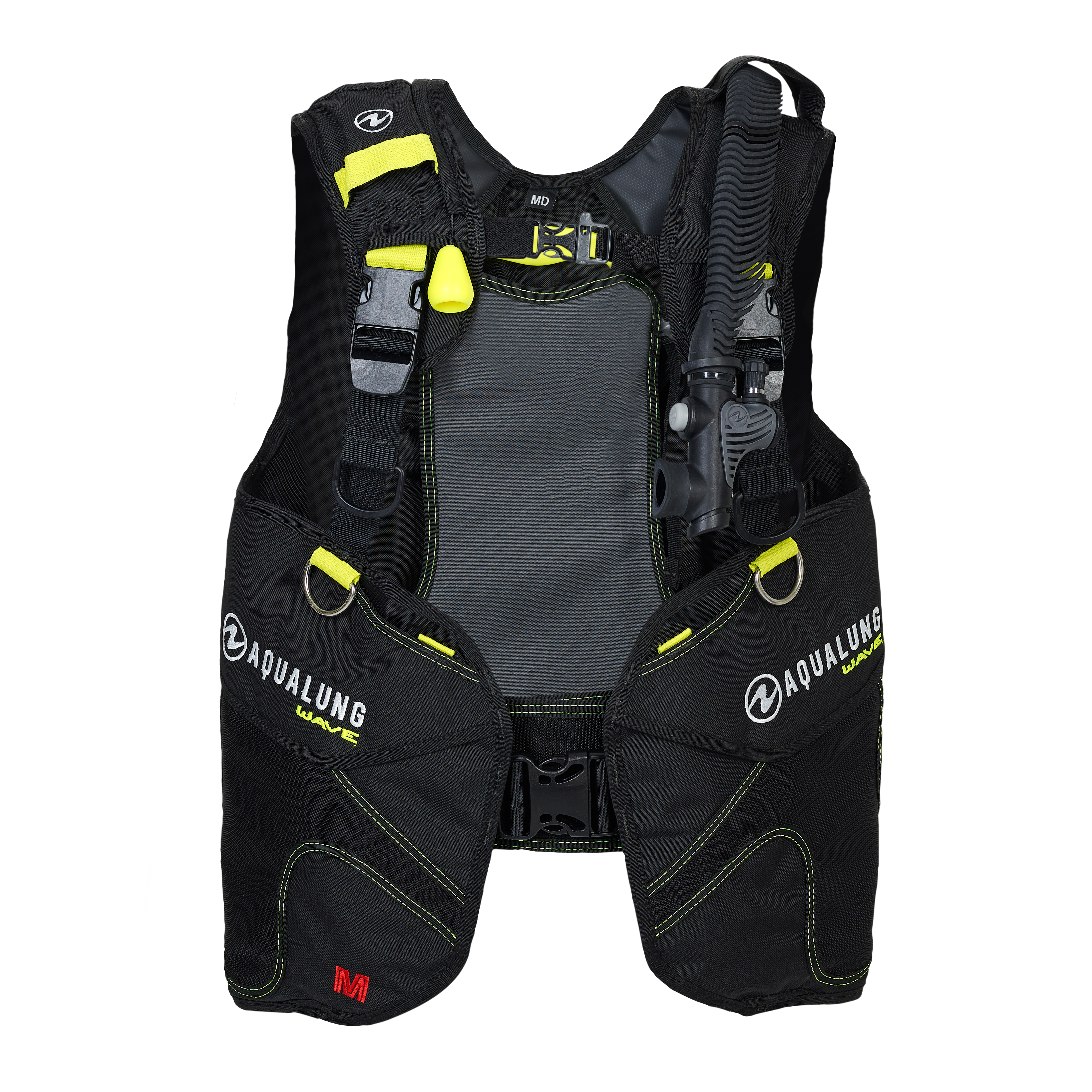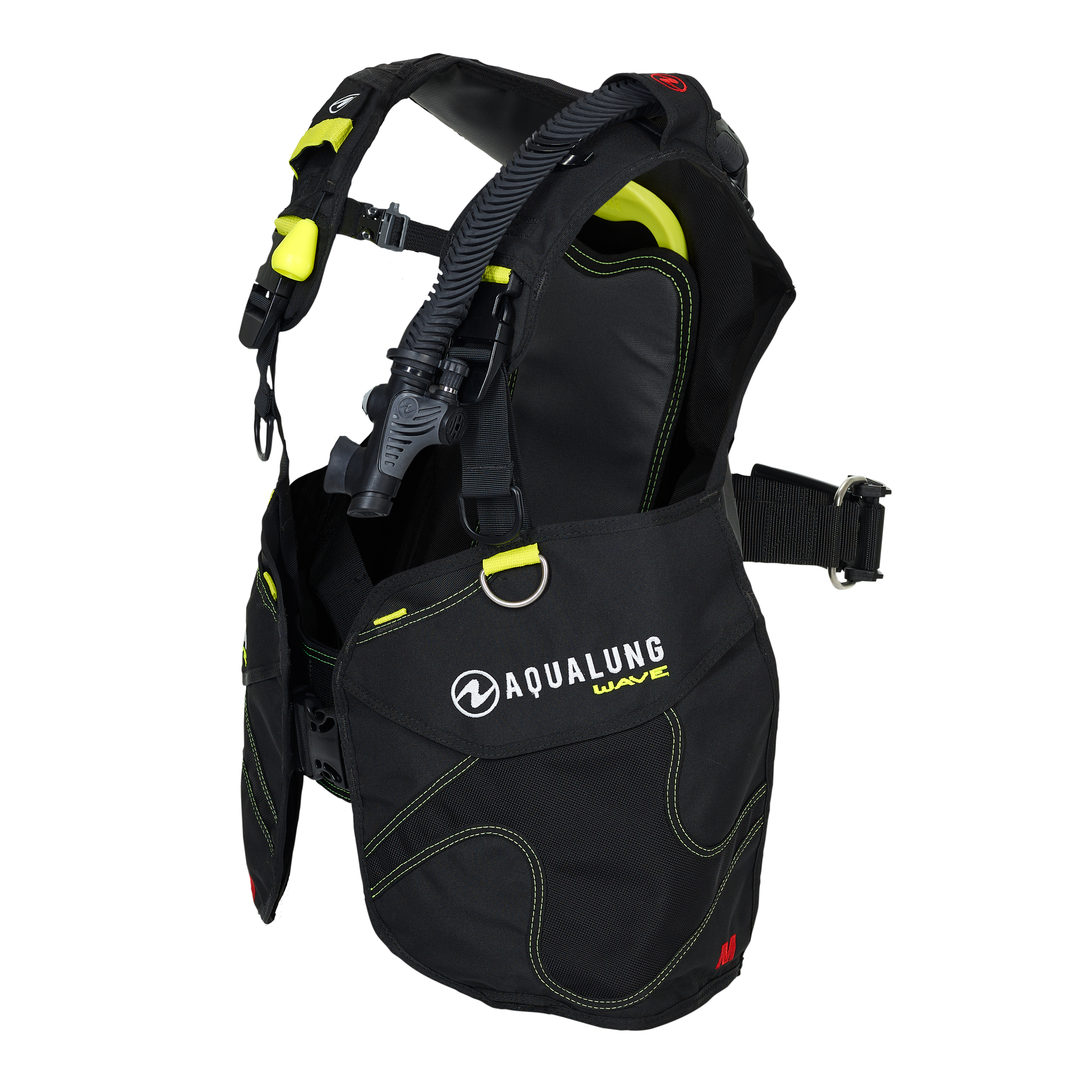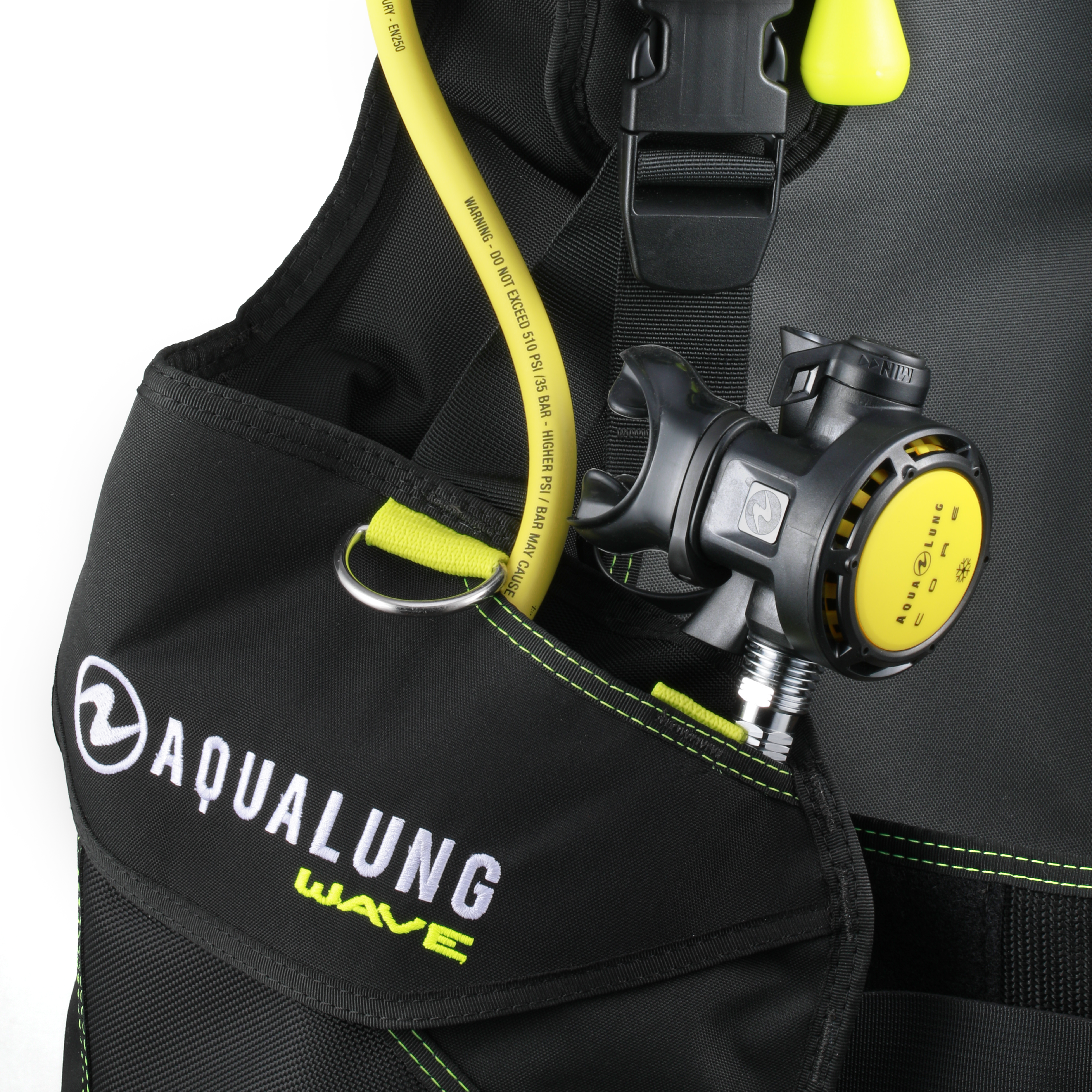 Aqualung Wave został wyposażony w praktyczne i łatwo dostępne kieszenie na akcesoria oraz kieszeń na oktopusa, umieszczoną w górnej przedniej części prawego pasa naramiennego, co zapewnia szybki dostęp w sytuacjach awaryjnych. Dodatkowo, górna część lewego naramiennika umożliwia przechowywanie instrumentów pomiarowych. Dwustronne pomarańczowe spłuczki ułatwiają usuwanie powietrza z jacketu podczas wynurzenia.