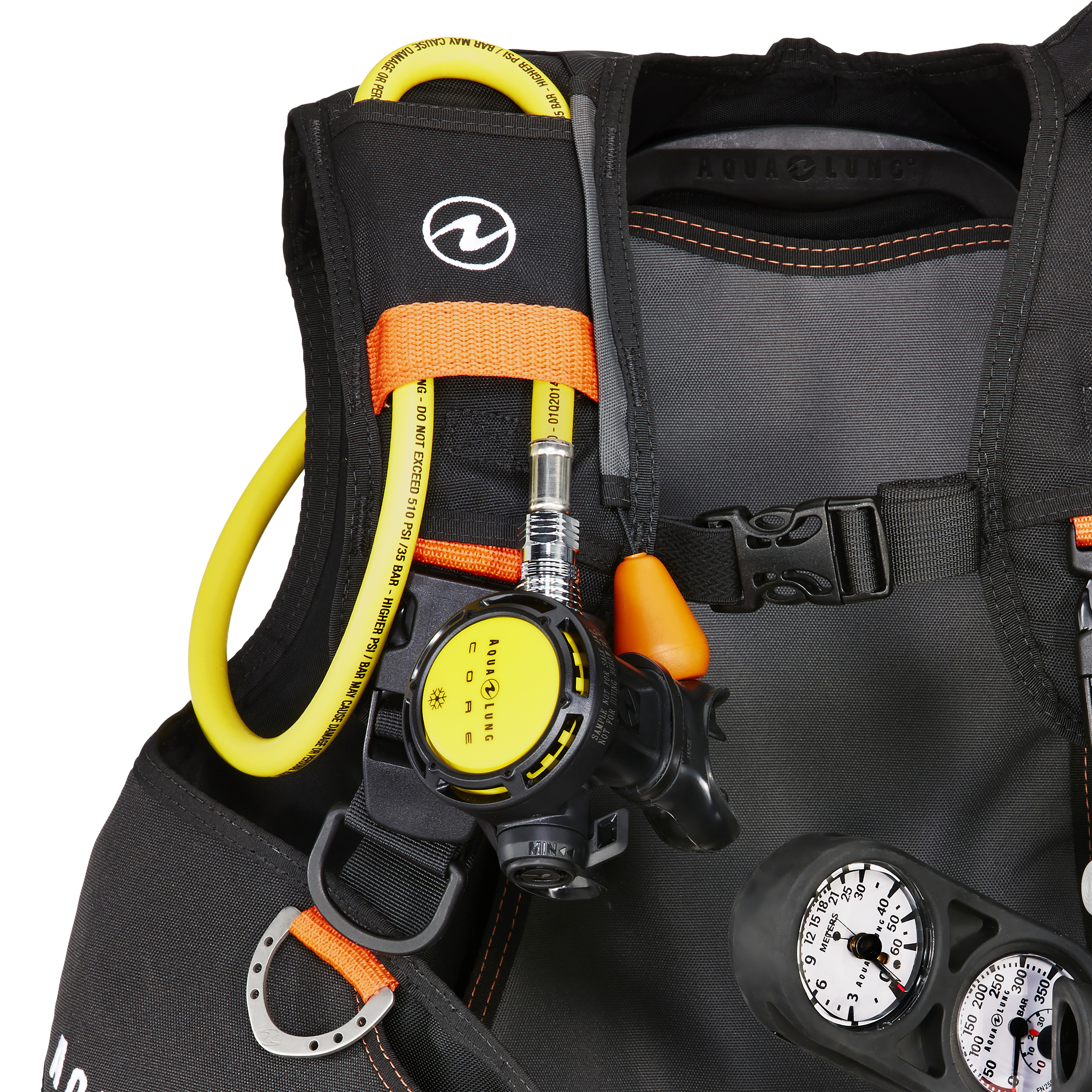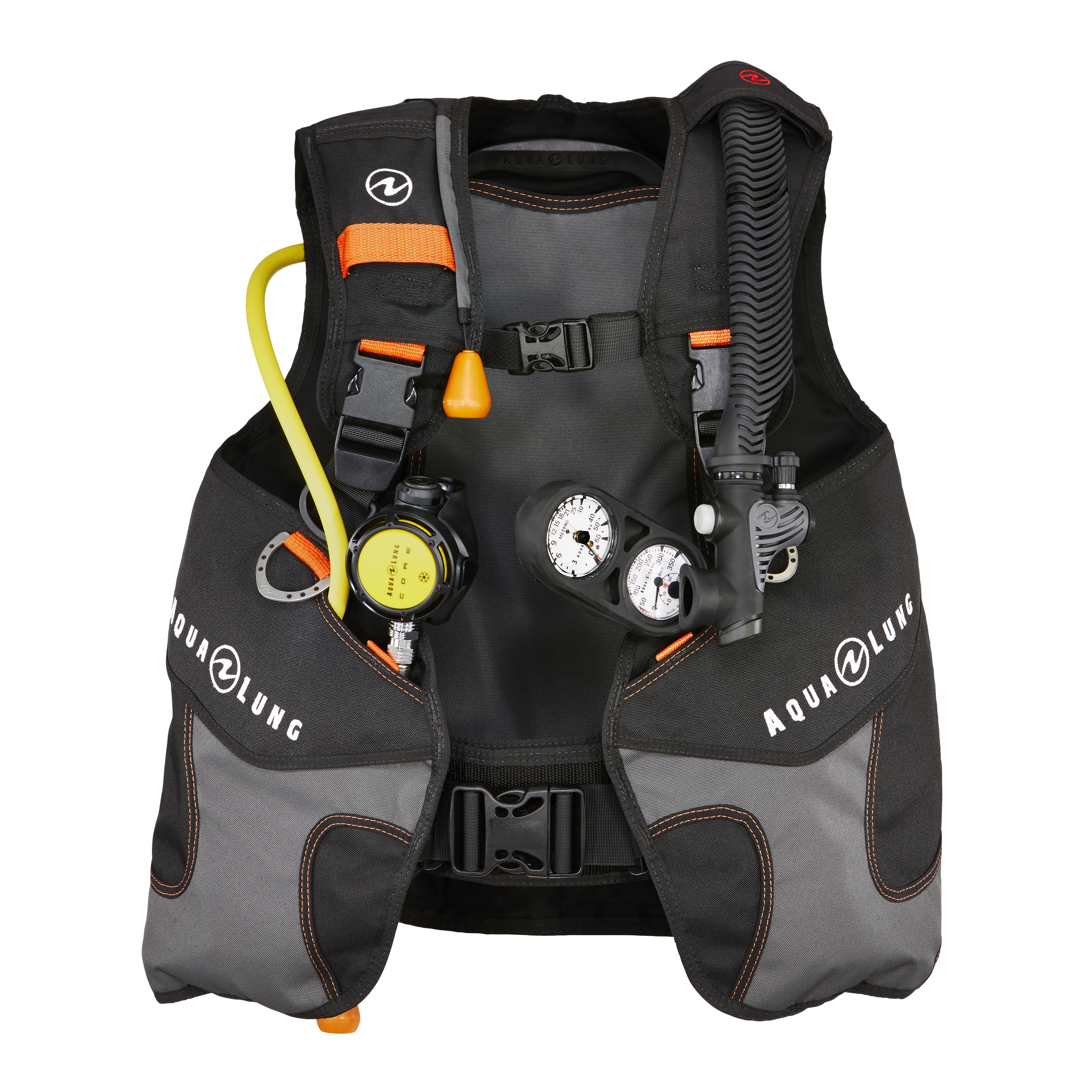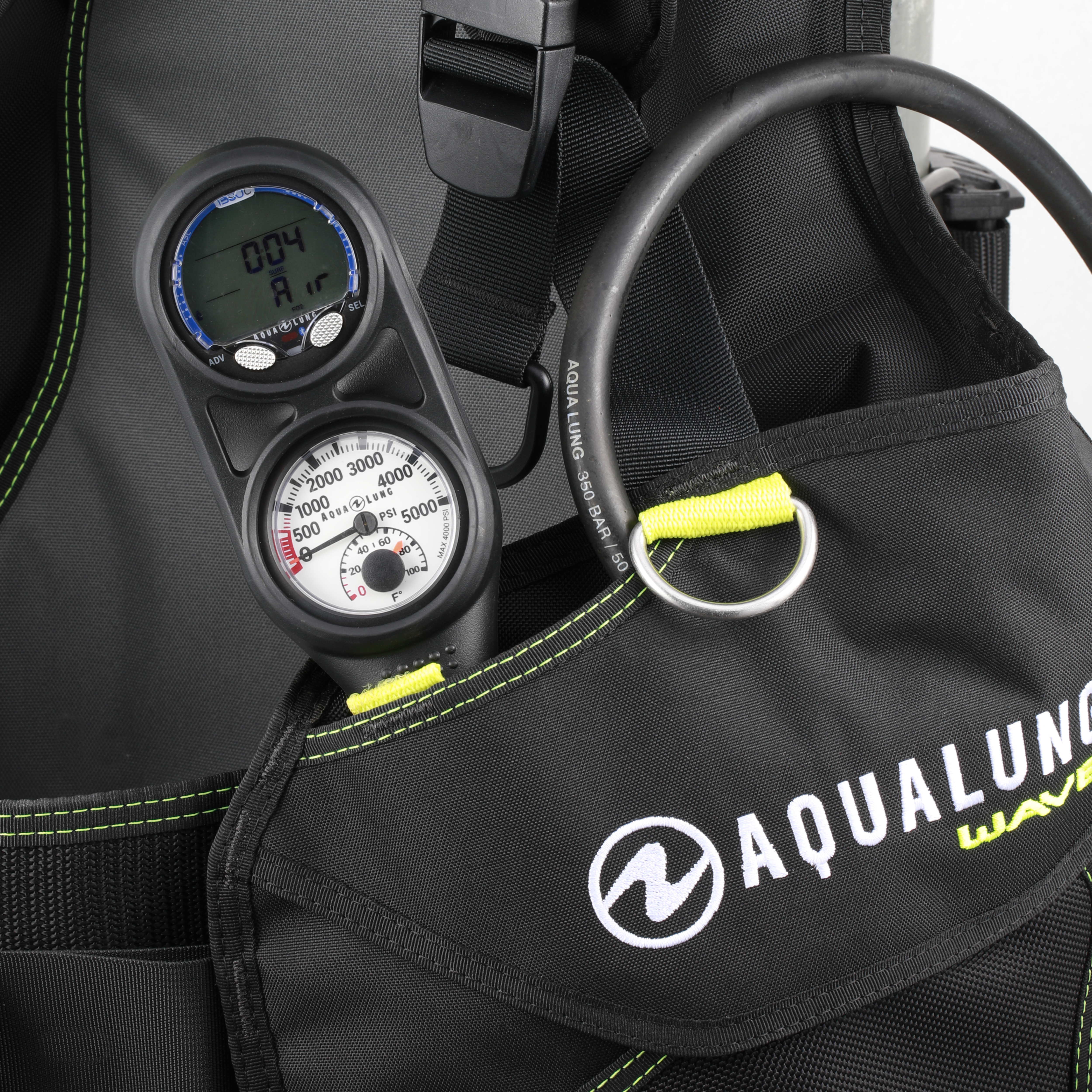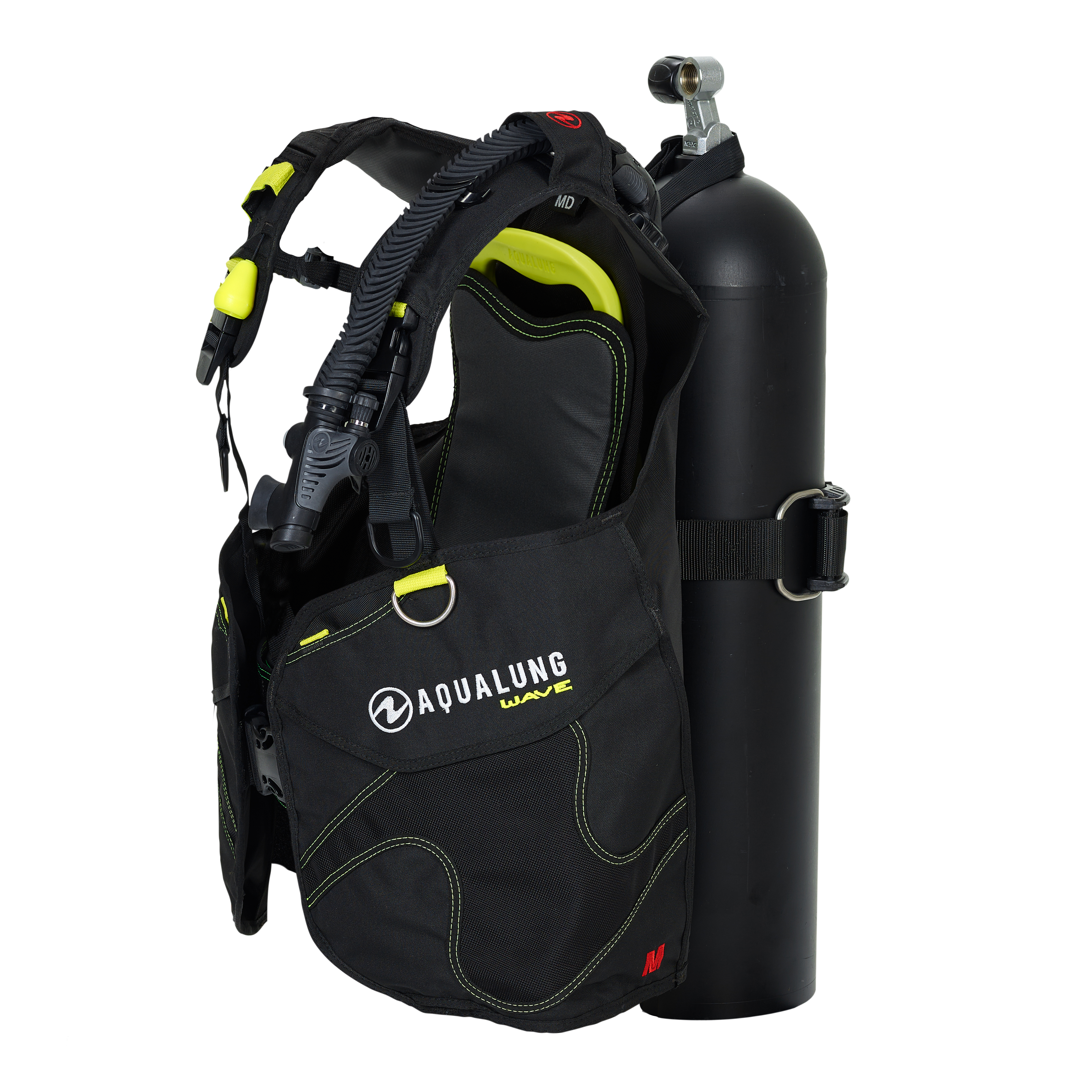 Aqualung Wave został wyposażony w praktyczne i łatwo dostępne kieszenie na akcesoria oraz kieszeń na oktopusa, umieszczoną w górnej przedniej części prawego pasa naramiennego, co zapewnia szybki dostęp w sytuacjach awaryjnych. Dodatkowo, górna część lewego naramiennika umożliwia przechowywanie instrumentów pomiarowych. Dwustronne pomarańczowe spłuczki ułatwiają usuwanie powietrza z jacketu podczas wynurzenia.