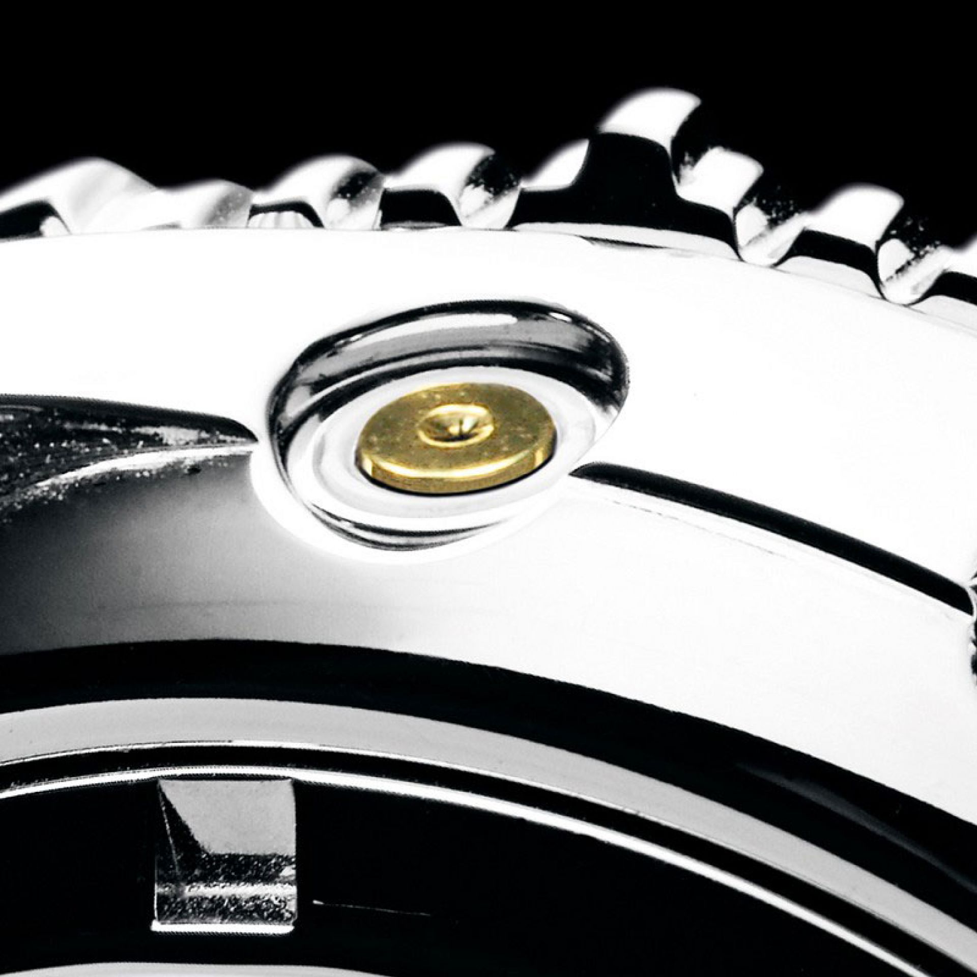 Zegarek wyróżnia się solidną kopertą ze stali nierdzewnej o średnicy 41 mm i szafirowym szkłem o twardości 9. To materiał odporny na zarysowania i niemal niezniszczalny – ustępuje wyłącznie diamentowi. Dzięki temu Twój zegarek nie straci na jakości, nawet jeśli często nurkujesz w trudnych warunkach, gdzie piasek, skały czy sól morska stanowią codzienność.