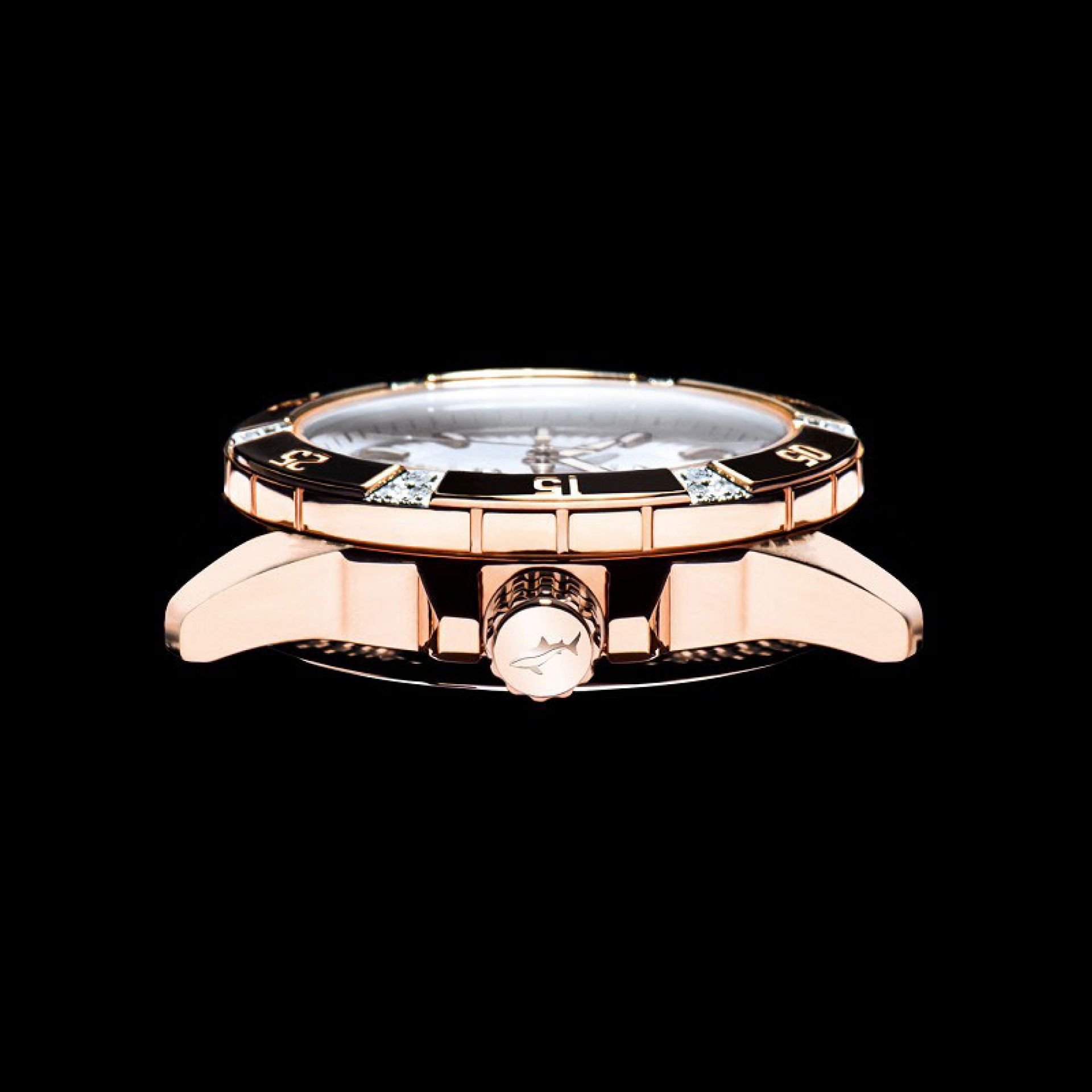Diamond Diver Gold Rock Beach wyróżnia się unikatowym designem – bezel ozdobiony 18 prawdziwymi diamentami nie tylko przyciąga spojrzenia, ale również pełni praktyczną rolę podczas nurkowania. Każdy diament jest osadzony w specjalnie zaprojektowanych punktach, co nadaje zegarkowi niepowtarzalnego charakteru.