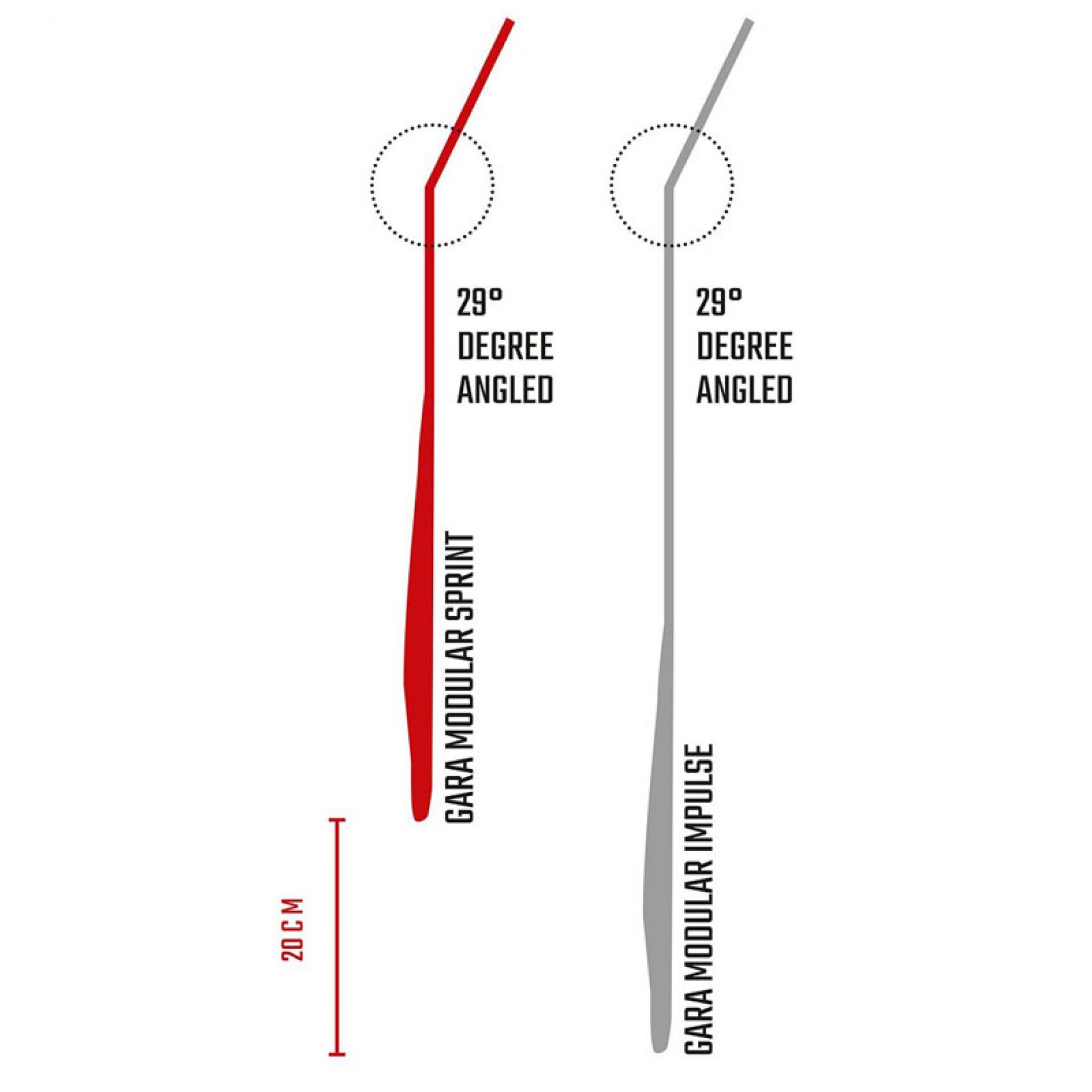 Ostrze produkowane z elastomerowego technopolimeru o zmiennej grubości (średnio od 4 mm u nasady do 2 mm na końcu), co zapewnia progresywny i sprężysty flex. Zastosowany kąt 29° przekłada się na mocne pchnięcia przy mniejszym wysiłku mięśni.