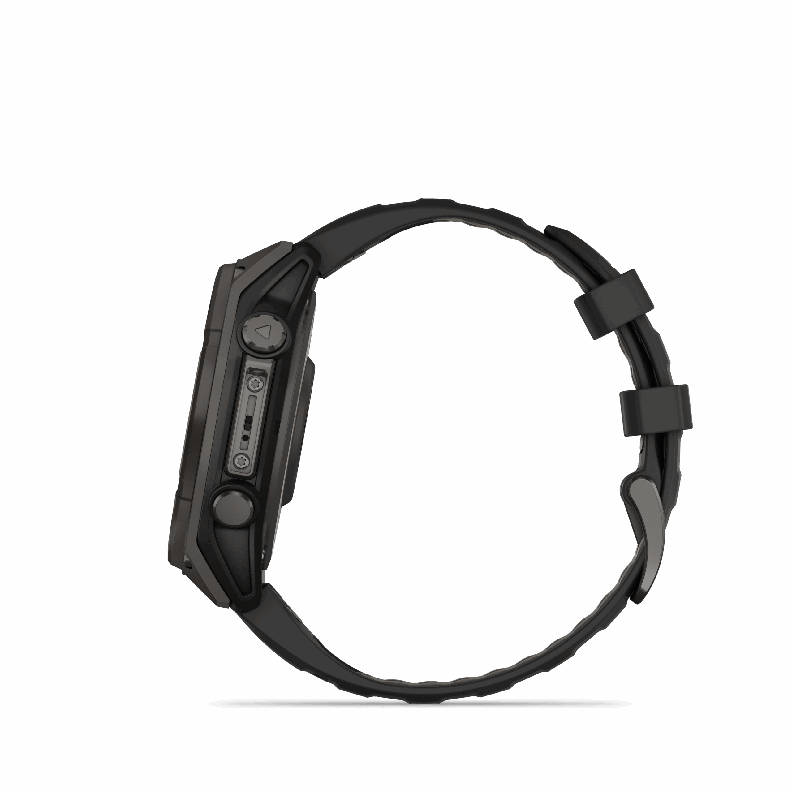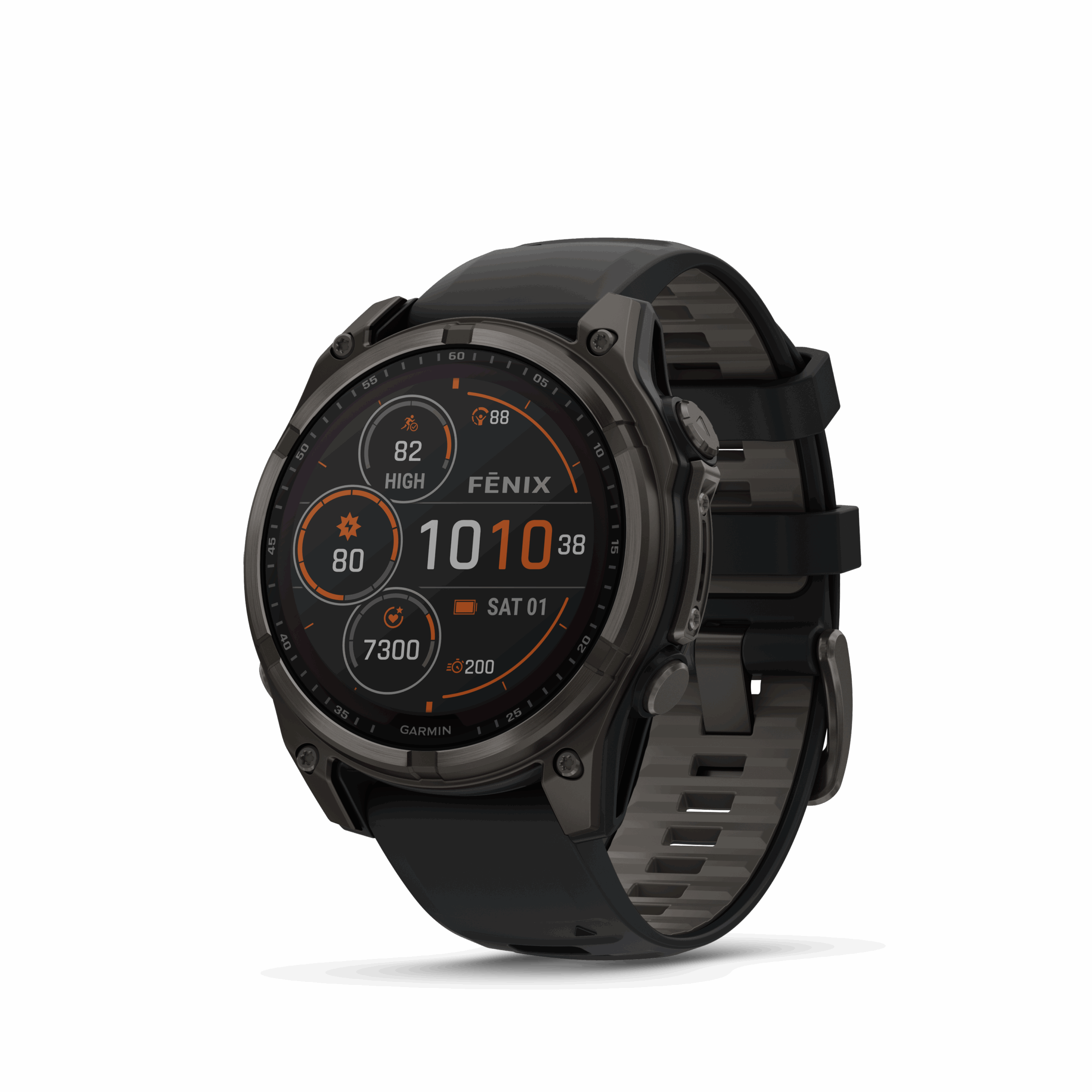 Koperta wykonana z tytanu i pokryta powłoką DLC (Diamond-Like Carbon) zapewnia wyjątkową odporność na zarysowania, ścieranie i korozję, przy zachowaniu niskiej wagi. Kolor Carbon Gray podkreśla techniczny, profesjonalny charakter zegarka, a silikonowy pasek Black/Pebble Gray gwarantuje komfort noszenia i stabilność nawet podczas wielogodzinnego wysiłku.