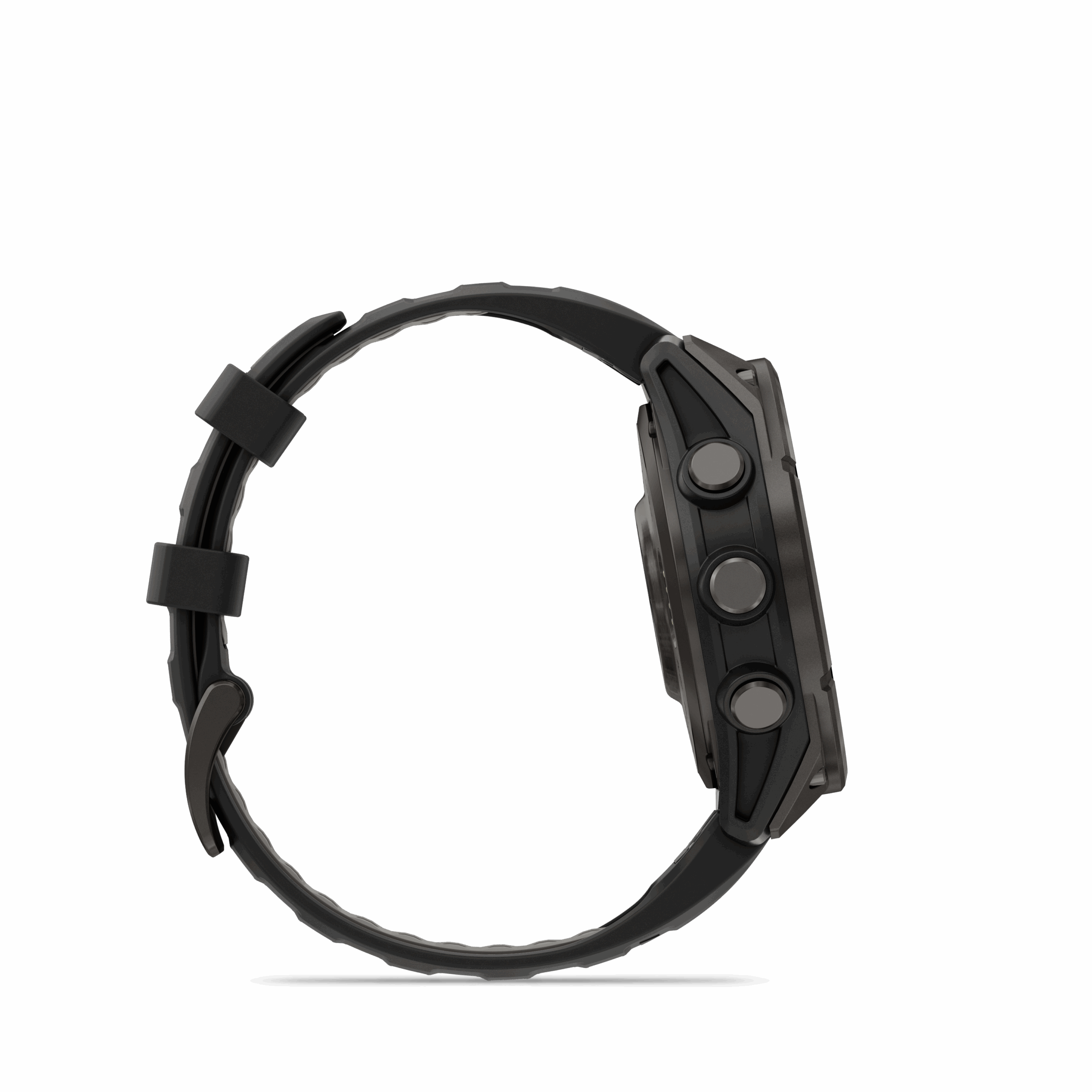 Koperta tego modelu wykonana jest z tytanu pokrytego powłoką DLC (Diamond-Like Carbon), co zapewnia doskonałe połączenie lekkości, trwałości i odporności na zarysowania. Pasek w kolorze Black/Pebble Gray wykonany z wysokiej jakości silikonu zapewnia wygodę noszenia przez cały dzień — bez względu na intensywność treningów czy aktywności outdoorowych.