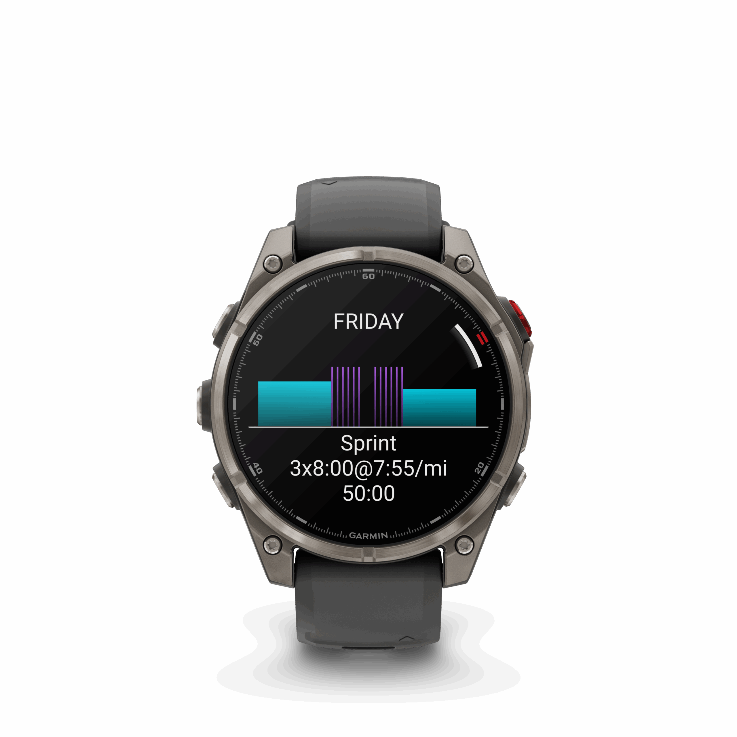 Bateria w tym modelu pracuje długo i efektywnie: wiele dni w trybie smartwatch, dziesiątki godzin w trybie treningowym z włączonym GPS i AMOLED. Wytrzymała konstrukcja z tytanu zapewnia odporność na zarysowania i codzienny wysiłek, a silikonowy pasek w kolorze Graphite/Black gwarantuje komfort nawet przy intensywnym użytkowaniu.