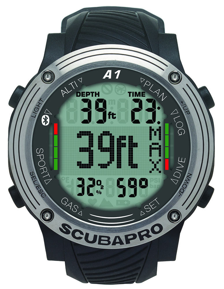 - Bezpieczeństwo na Pierwszym Miejscu – Komputer A1 jest wyposażony w alarmy i algorytmy dekompresyjne, które ostrzegają nurka o zbliżających się limitach, zwiększając bezpieczeństwo podczas nurkowania.