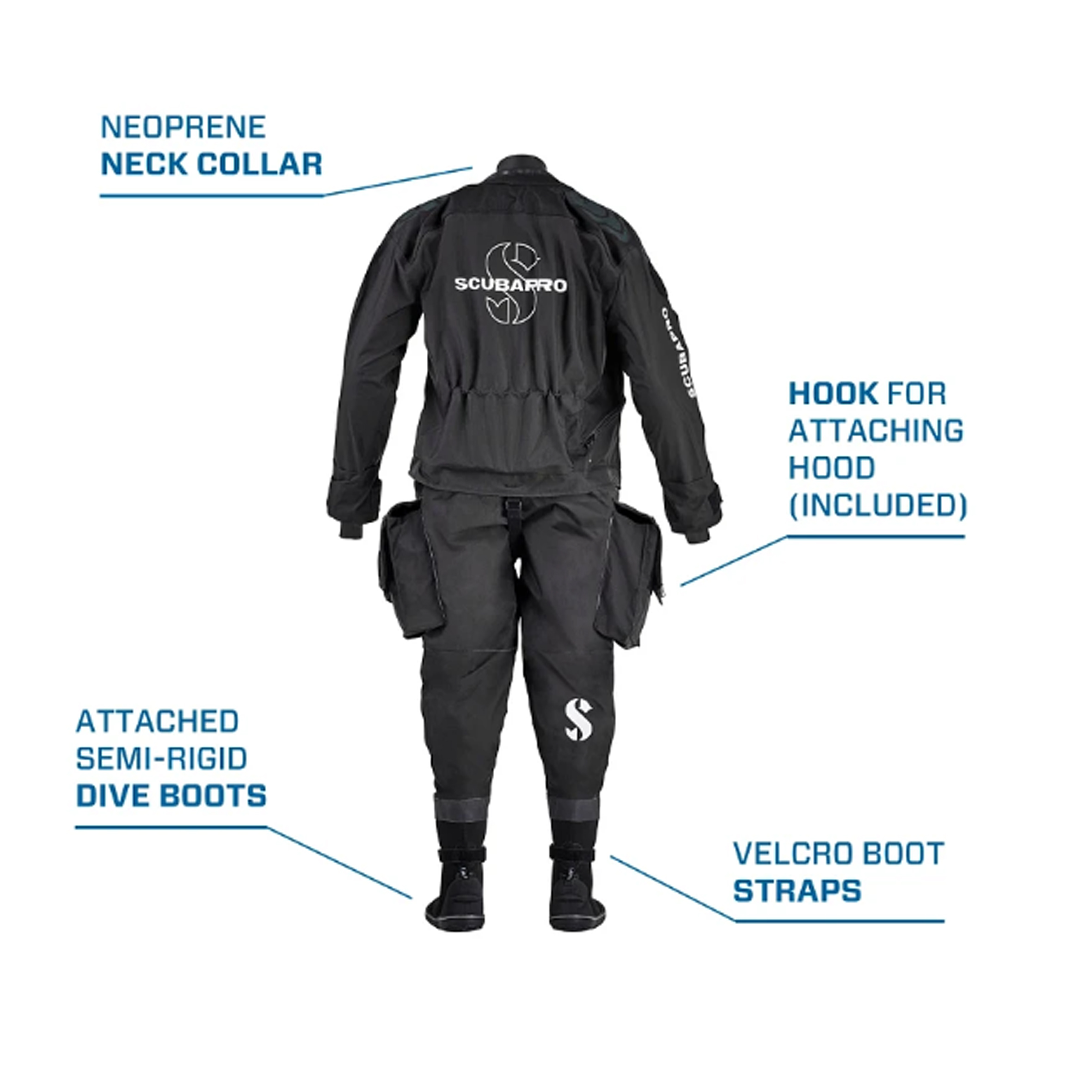 Scubapro Evertech Dry Breathable Drysuit to suchy kombinezon premium z oddychającego trilaminatu. Wyposażony w wodoodporny zamek, zawory Si-Tech, półsztywne buty i duże kieszenie cargo. Idealny dla nurków technicznych i rekreacyjnych, gwarantuje suchość, wygodę i pełną swobodę ruchów w każdych warunkach.