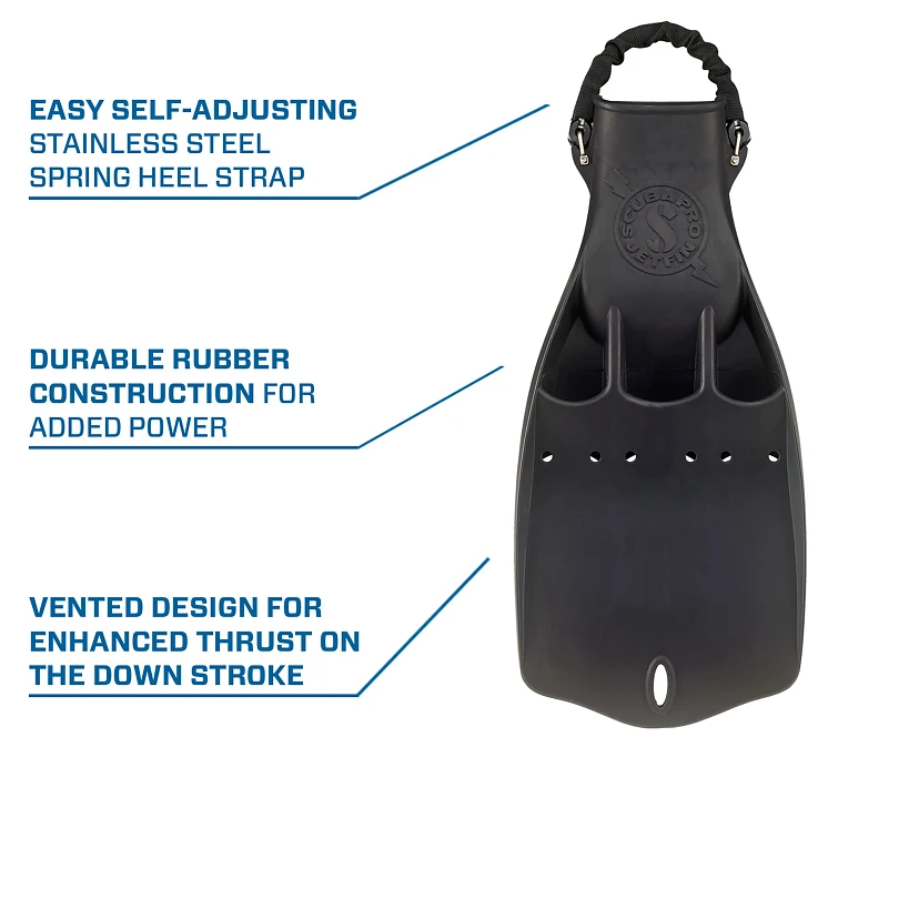 Scubapro Jet Fins z paskiem sprężynowym (spring heel strap) to klasyczne, mocne płetwy nurkowe o wysokiej wydajności, idealne do nurkowań technicznych, rekreacyjnych i eksploracyjnych — rozmiar XXXL(49+).