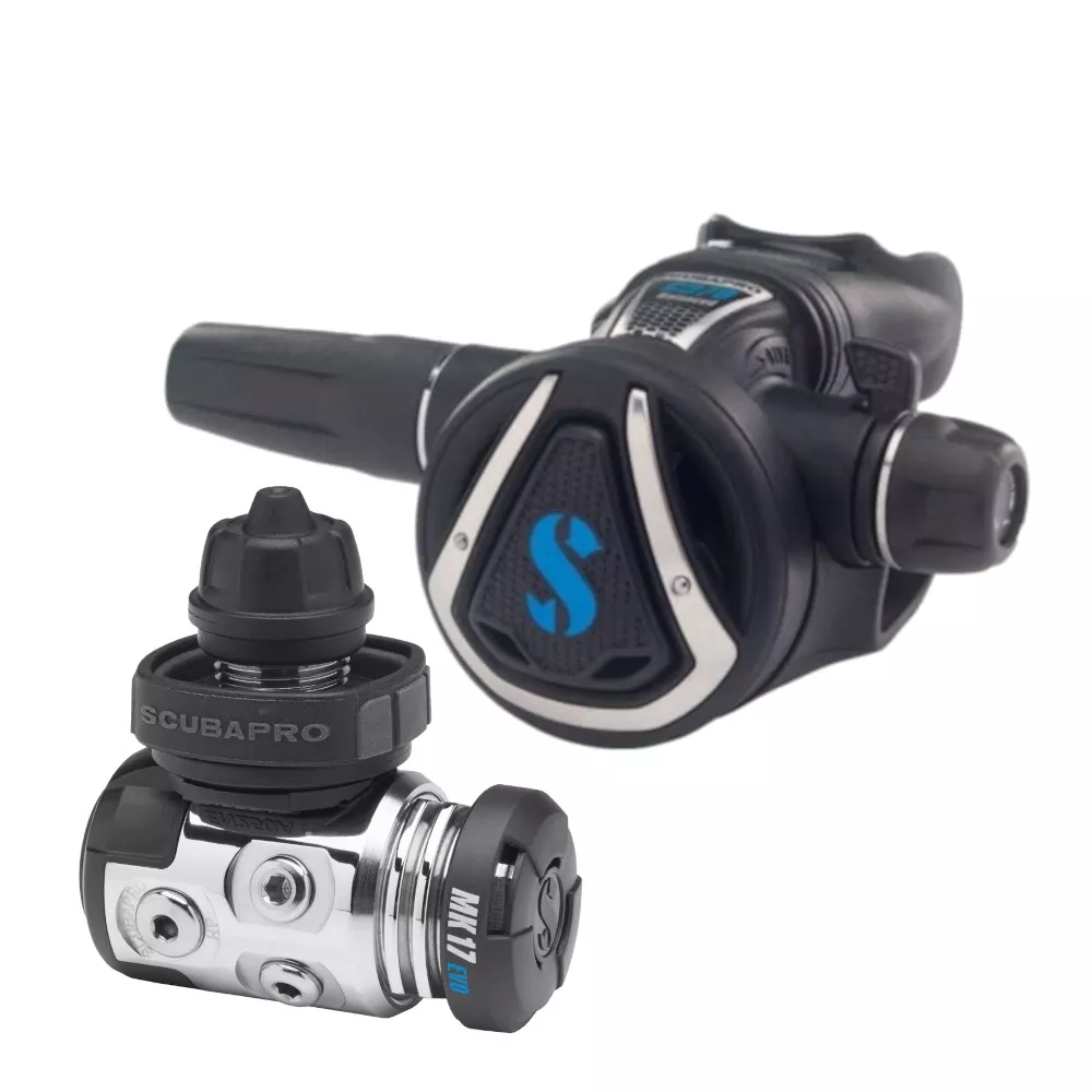 🔹 Pierwszy stopień MK17 EVO – MK17 EVO to uszczelniony pierwszy stopień, który oferuje najlepszą ochronę przed zanieczyszczeniami, piaskiem i wodą. Jego konstrukcja chroni mechanizmy regulatora, dzięki czemu jest bardziej odporny na korozję i inne czynniki środowiskowe. Jest idealnym rozwiązaniem do nurkowania w trudniejszych warunkach, jak w wodach słonych i brudnych. Dzięki technologii ScubaPro, pierwszy stopień zapewnia stabilne ciśnienie powietrza, co przekłada się na komfort i bezpieczeństwo nurkowania.